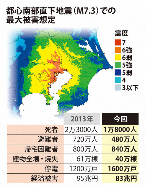 今回、首都直下型地震の被害想定が発表されました。死者数