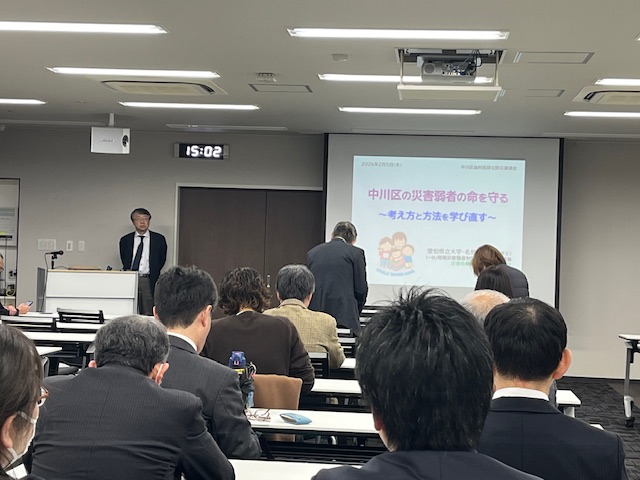 2月5日、中川区休日急病診療所の会議室で、清水代表理事による、歯科医師・養護教諭などを対象とした防災研修が行われました。